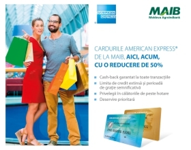 Până la 31.01.2017 cardurile American Express de la MAIB sunt emise în condiţii deosebit de avantajoase cu o reducere de 50% la taxa de administrare pentru primul an.