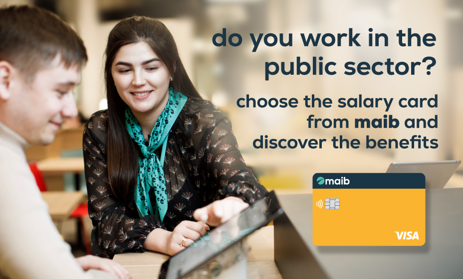 With the maib salary card, you enjoy benefits wherever you are. You only need to install the maibank app and a fascinating world full of advantages will open up to you.