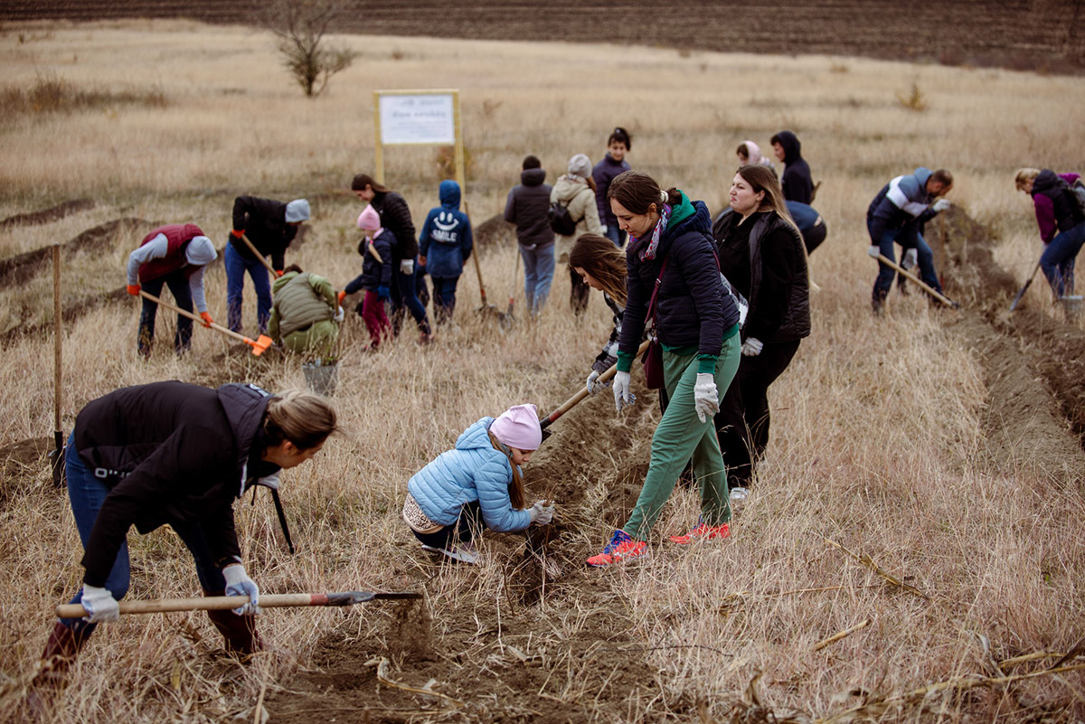 About 150 employees and their children, volunteers and locals met in the village of Cruzesti, a suburb of the capital, to expand the maib forest planted last year on an area of two hectares, being the first forest in this locality.