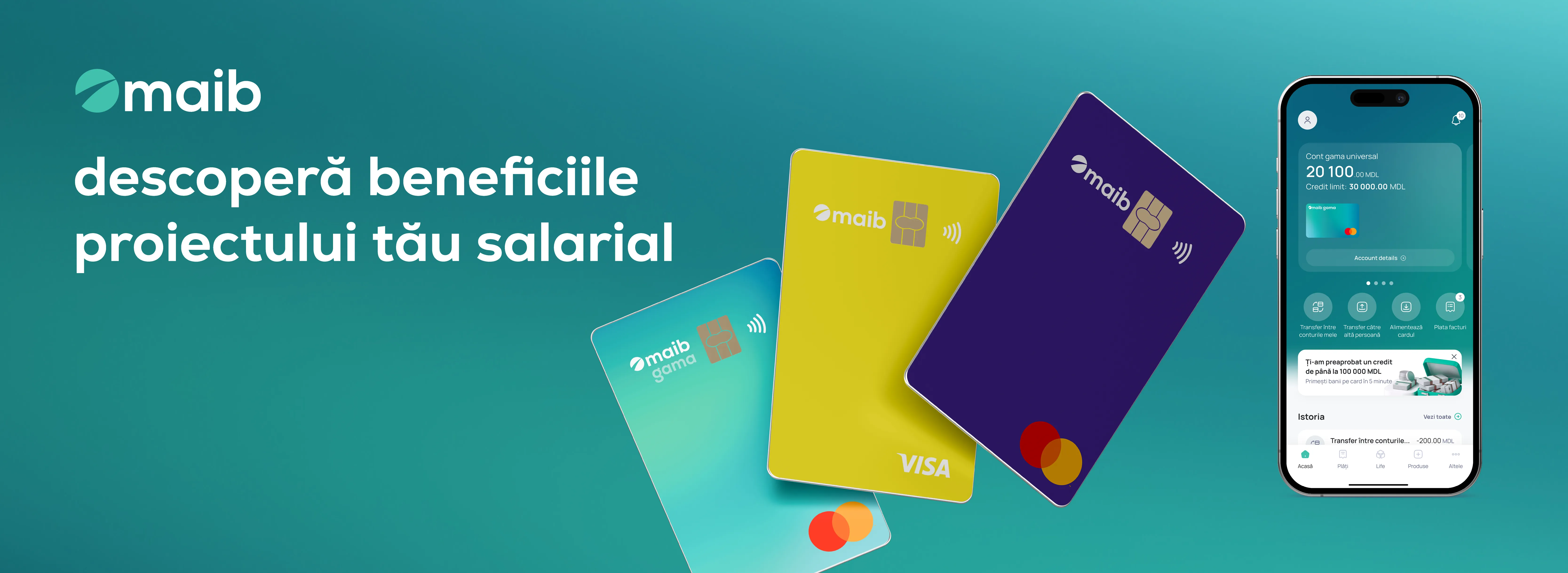 Îți mulțumim că faci parte din familia maib. Ne bucurăm să te avem alături și să-ți aducem beneficiile speciale oferite în cadrul proiectului salarial maib. Lună de lună, ne dorim să te surprindem plăcut ca să te bucuri de toate avantajele de a fi client maib.