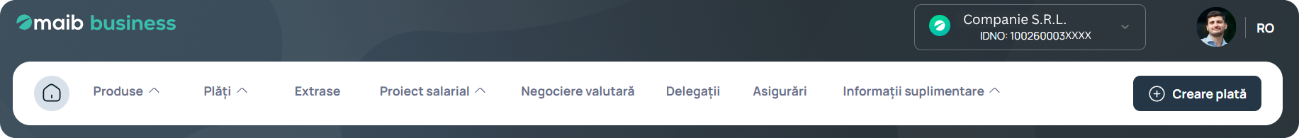 - Ordinea modulelor va fi diferită. De exemplu, modulul „Plăți” va fi pe poziția a doua, iar modulul „Extrase” va fi pe poziția a treia
