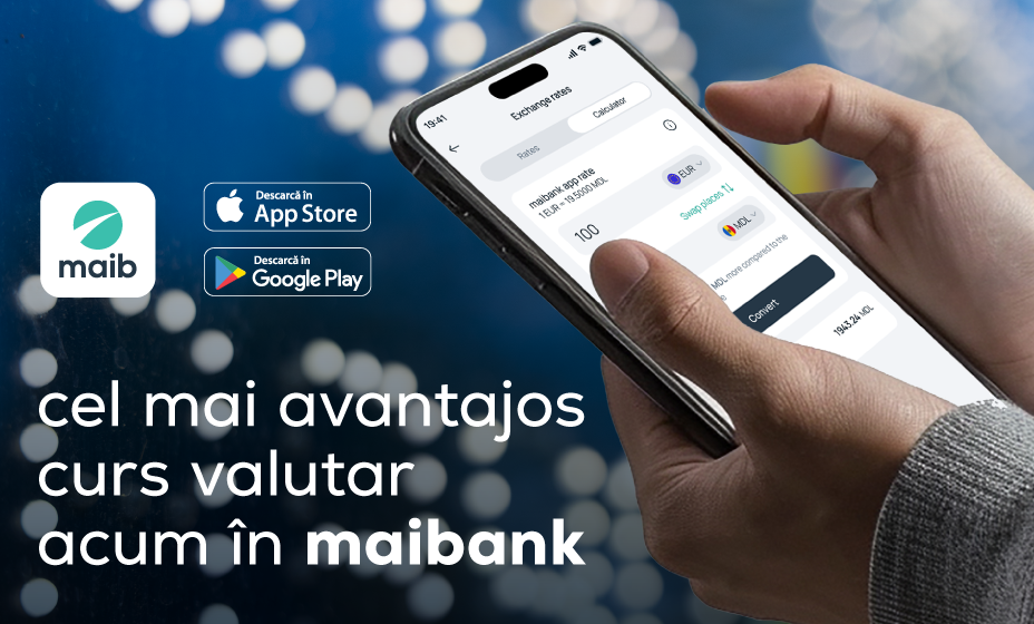Maib aduce o noutate esențială pentru clienții săi: schimbul valutar direct în aplicația maibank este acum disponibil la cel mai bun curs oferit de bancă, mai avantajos decât la ghișeu sau la bancomat.