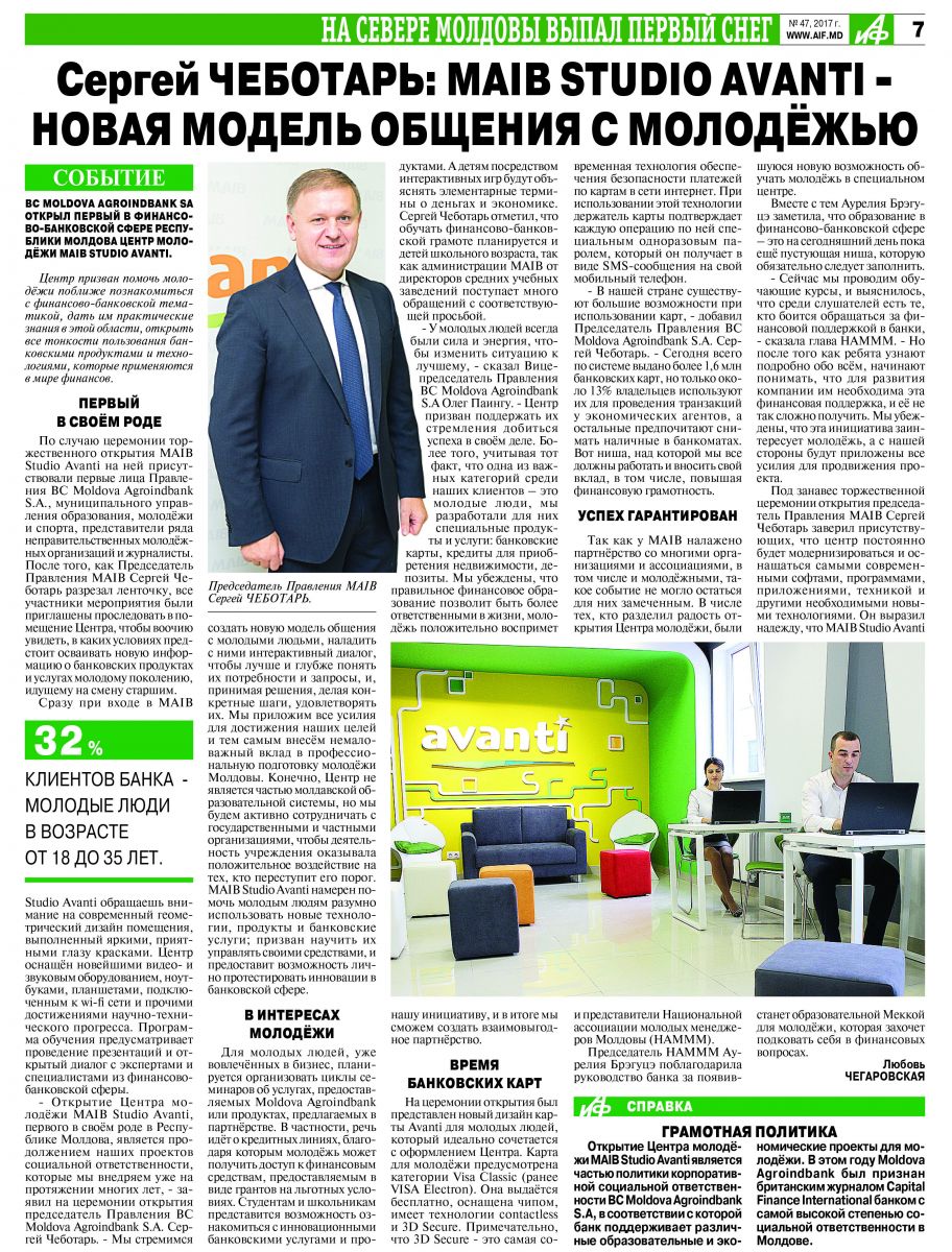 BC MOLDOVA AGROINDBANK SA ОТКРЫЛ ПЕРВЫЙ В ФИНАНСОВО-БАНКОВСКОЙ СФЕРЕ РЕСПУБЛИКИ МОЛДОВА ЦЕНТР МОЛОДЕЖИ MAIB STUDIO AVANTI.