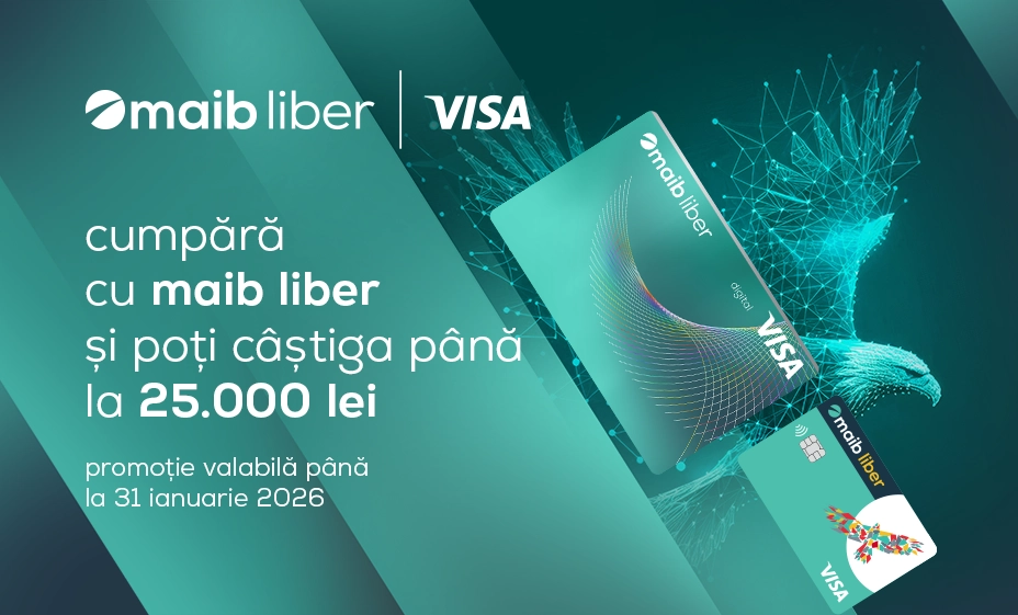 Maib lansează promoția „Folosește maib liber și poți primi banii înapoi”, prin care ai șansa să primești banii înapoi pentru cumpărăturile efectuate timp de o lună cu cardul maib liber.