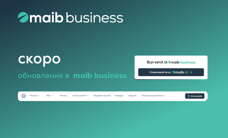 Предстоит важное обновление в maib business — онлайн-банкинге для компаний.