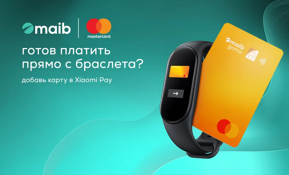 Maib и Mastercard реализовали инновационный проект, обеспечив полностью цифровой опыт бесконтактной оплаты на носимых устройствах Xiaomi с поддержкой NFC — браслетах и часах — через Xiaomi Pay. Теперь любой клиент maib может добавить карты Mastercard в цифровой кошелек Xiaomi Pay и платить мгновенно, просто поднеся браслет или часы к POS-терминалу.